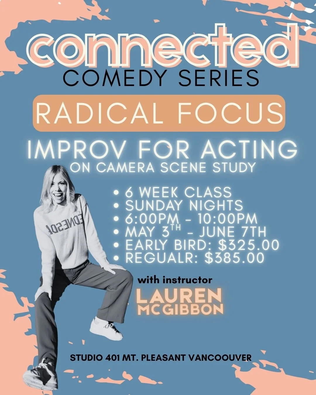 In this six week class Lauren McGibbon (A Series of Unfortunate Events, Trial & Error, Scaredy Cats) combines her twenty plus years experience as an improvisor and actor to guide students in to delivering on-camera performances that are connected, committed and completely present in the moment.